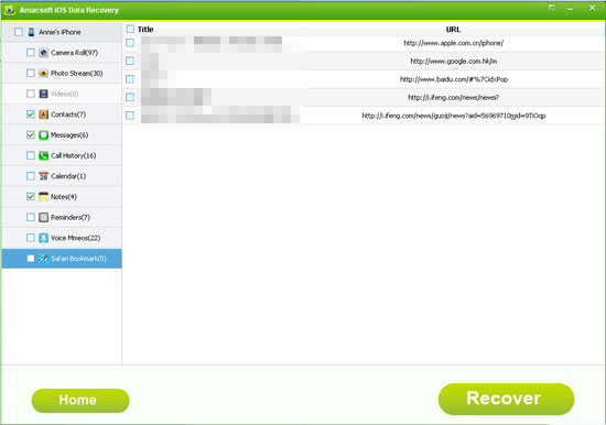 To get the lost bookmarks back, you need to look for a third-party program as your assistant - Amacsoft iPhone Safari Recovery (Windows 8/7) or iPhone Safari Recovery for Mac. With it, you can directly restore deleted safari bookmarks from the iPhone itself or find back lost iPhone safari bookmarks from iTunes backup files as you like. In order to make you understand how easy the program works, we will show you the detailed steps from these two different aspects. You can get the free trial version and decide which one is better according to your own needs.